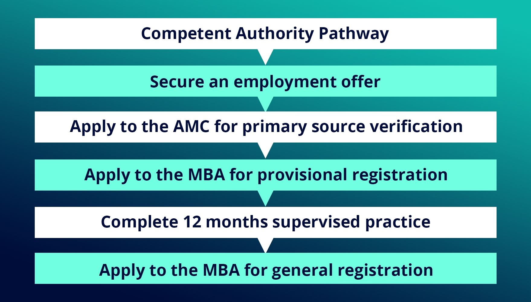 The Competent Authority pathway is for non-specialist and specialist IMGs, including general practitioners, who seek general registration with the Medical Board of Australia. This pathway is based on the recognition that certain international medical authorities have challenging assessment systems equivalent to those in Australia.